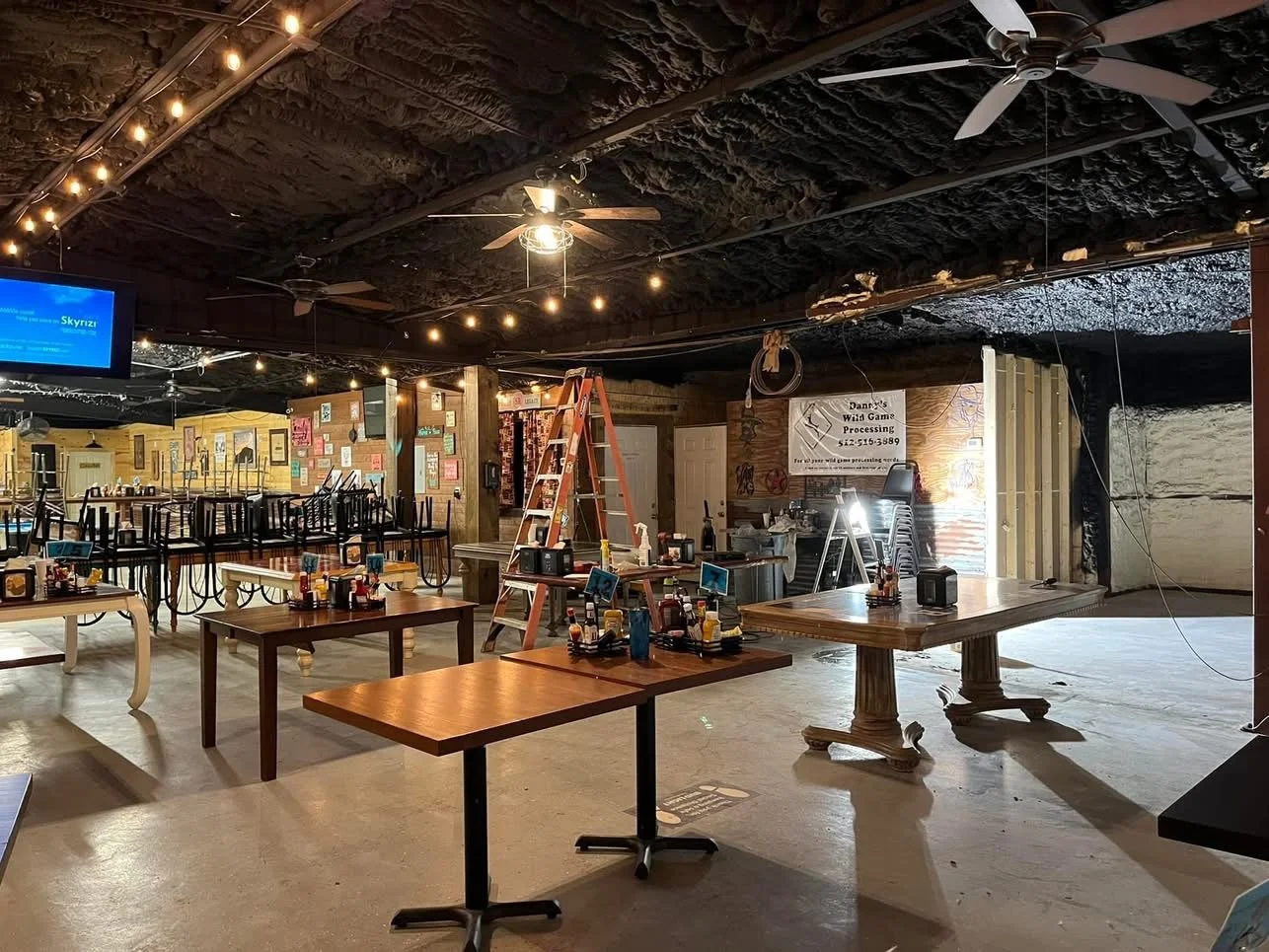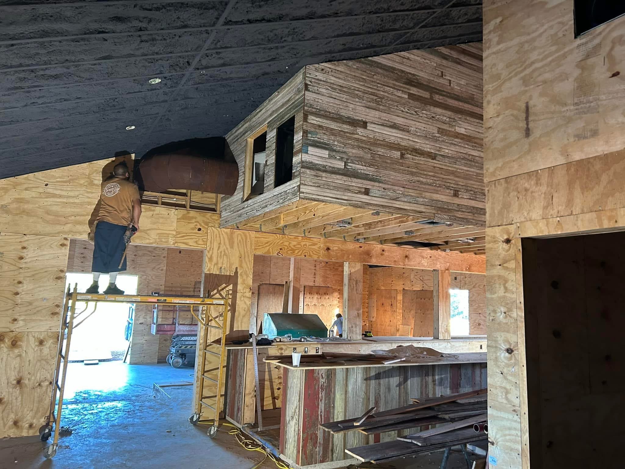 Skilled Technician Installing plywood for a unique bar called the Mean Eyed Cat in the Texas Hill Country!